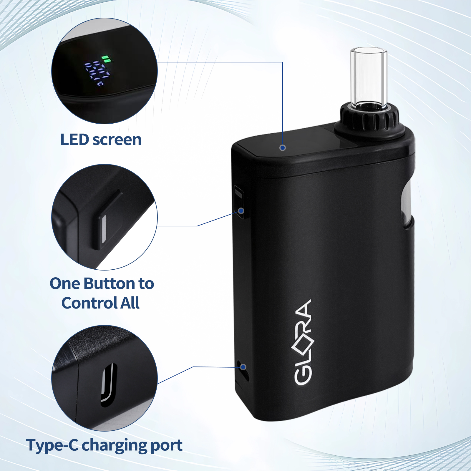 GLORA is designed for users who value clean vapor, innovative heating technology, and powerful performance. With a sealed quartz heating system and a direct airflow design, GLORA delivers a pure and consistent dry herb vaporization experience.